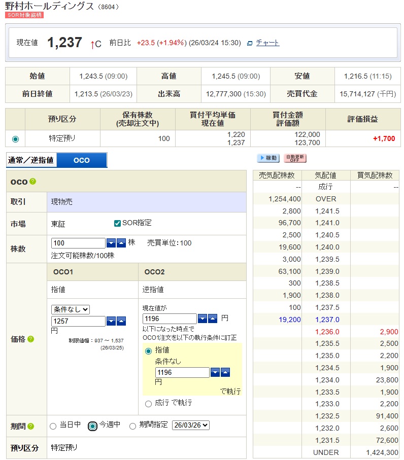 3/26に思ったように上がらず3914円で手じまい。 ←①